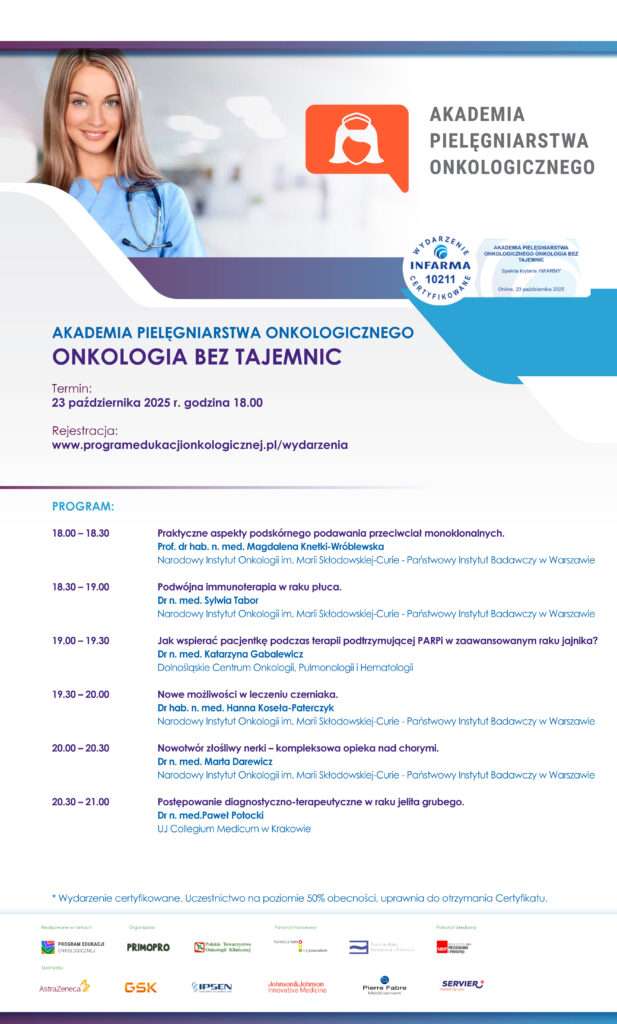 Przypominamy, że zapisy na wydarzenie są możliwe po wcześniejszym zarejestrowaniu się na Portalu Edukacyjnym www.programedukacjionkologicznej.pl