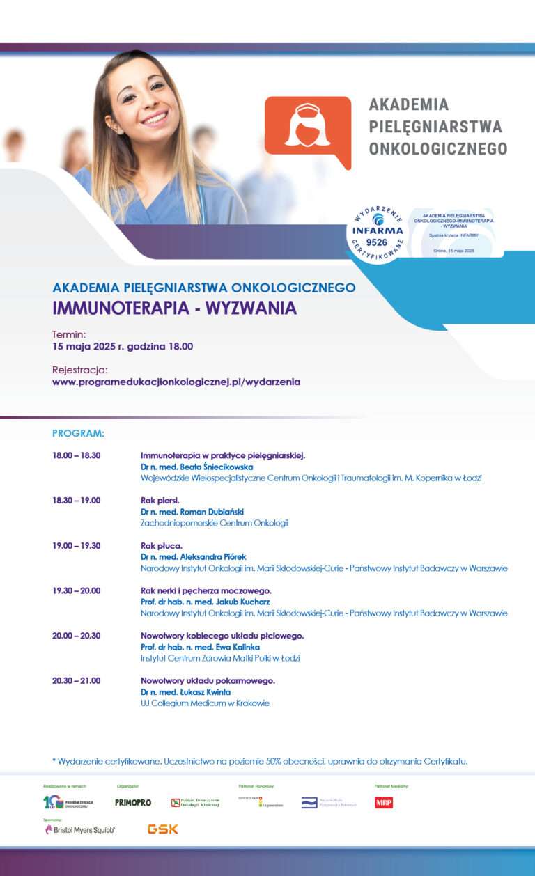 Zapraszamy na wyjątkowy webinar dla pielęgniarek i położnych! Temat: „Zaawansowana praktyka pielęgniarska (APN) – kierunek rozwoju polskiego pielęgniarstwa” Kiedy? Środa, 28 maja 2025 r., godz. 18:00 Goście specjalni: Prowadząca: Anna Woda – Specjalistka w dziedzinie pielęgniarstwa rodzinnego Dyskutujemy o przyszłości…