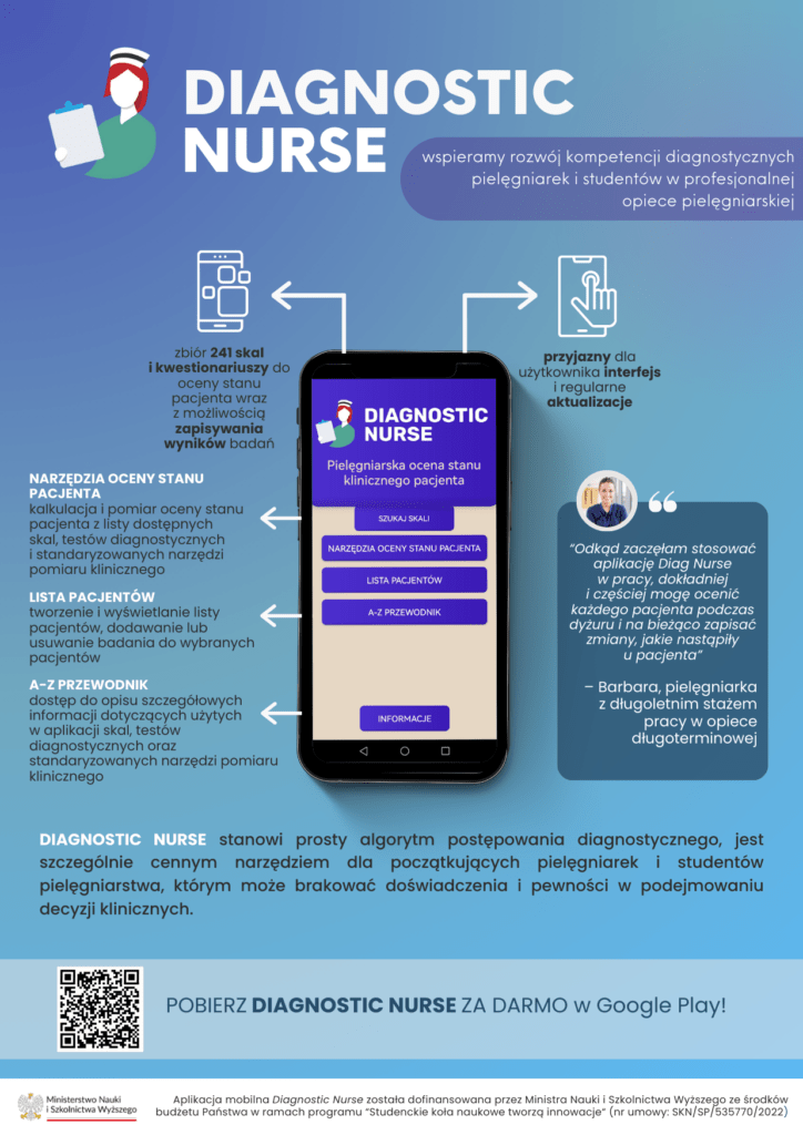 Diagnostic Nurse – jako narzędzie edukacyjne wspierające kompetencje diagnostyczne pielęgniarek i studentów pielęgniarstwa w opiece nad pacjentem.