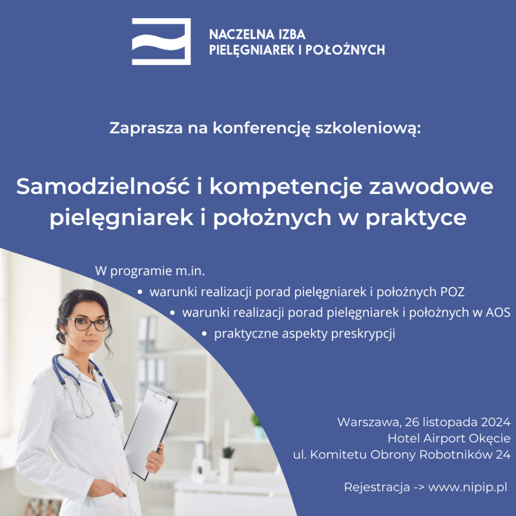 Konferencja szkoleniowa dla pielęgniarek i położnych pt.”Samodzielność i kompetencje zawodowe pielęgniarek i położnych w praktyce”’ 26 listopada 2024 w Warszawie
